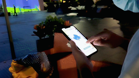 玩家通过手机扫描二维码进入游戏,选取自己喜欢的海洋生物类型并进行涂色,然后把完成好的作品滑上屏幕上方,凯撒宫的墙面上就会投影出这个动物的影像。