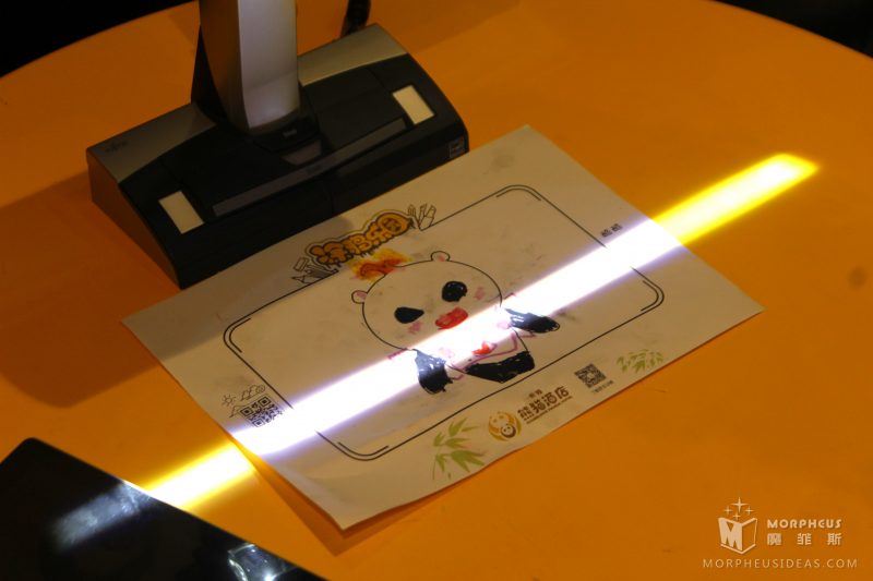 “涂鸦乐园”是一款新型的多媒体交互游戏。系统利用先进AR(Augmented Reality)技术,通过投影、扫描、传输、互动影象等多媒体手段结合展示,将小朋友带进一个虚拟和真实世界相结合的神奇世界,打造一个全新概念互动美术教学体验,形成一个全新概念的绘画教学手段。小朋友通过将自己绘画涂色的熊猫、豹子等动物进行扫描,可以让自己绘画的杰作变得鲜活起来,在“森林”中自由走动。并配备拍照摄影系统,让自己 “置身” 于奇幻的森林场景,实时拍摄和打印照片。亦可实现多人同时进行创作,而且还不怕弄得满手油墨,免去一系列的麻烦,最适合小孩玩耍。