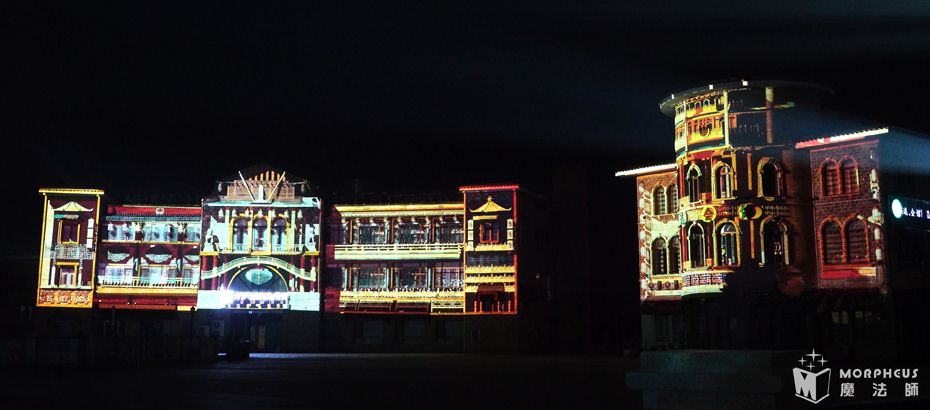 唐岛湾的商业广场从1号数到8号楼,总面积高达8000平方米。我们采用24台25000流明激光投影机及视频数据实时采集技术,成功实现了8栋楼体动画同步联动的震撼效果。本次建筑投影秀共使用了24台2.5万流明度的投影机,涉及8栋大楼总面积大约4000多平方米的3D Mapping建筑投影秀。