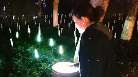 一串串光影灯从上至下垂吊,流光溢彩,如诗似幻,穿梭期间,享受片刻的静谧与美好。