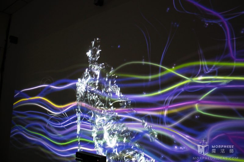 參與者做出任意動作時會在身體周圍不斷地產生白色的線條和閃爍的粒子