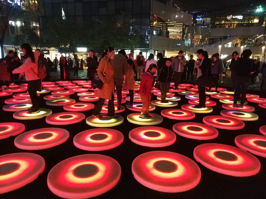 “地面互動”是互動投影採用先進的電腦視覺科技和投影顯示技術來營造一種奇幻動感的互動體驗,系統可以產生各種特效影像。讓你進入一種虛實融合、亦真亦幻的奇妙世界。觀眾通過身體動作來與影像進行互動,互動投影系統能帶給觀眾一種全新的互動體驗。
