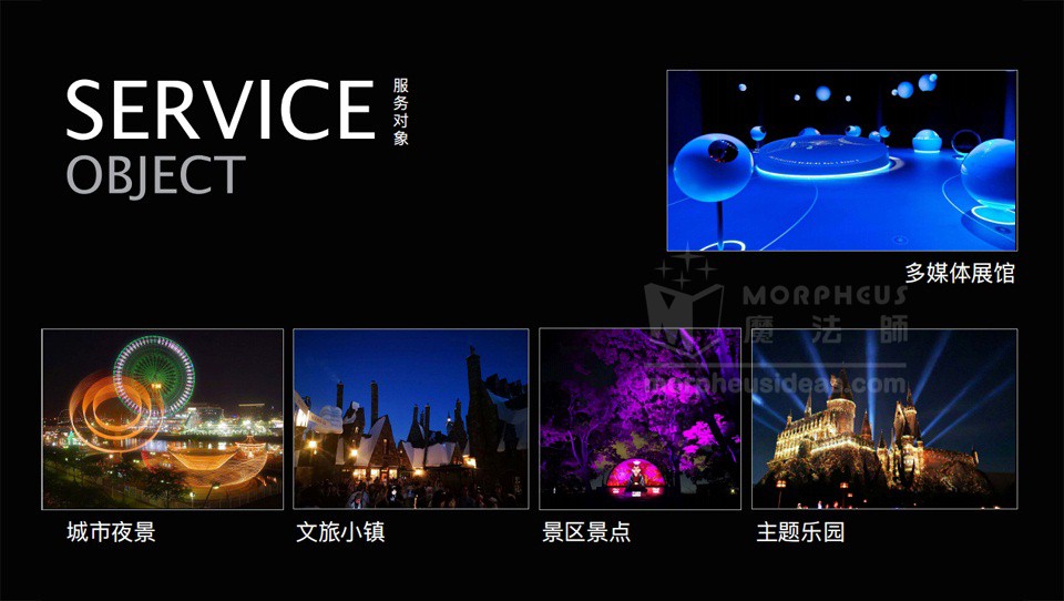 灯光艺术装置、艺术交互应用、球幕影院、全息成像