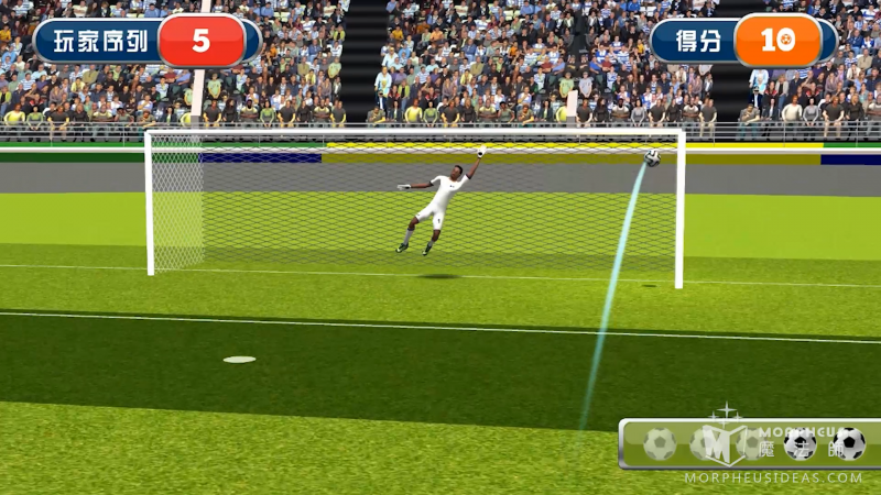 点球大战游戏还采用多角度还原足球线路,游戏真实性更高,娱乐性更强!不再只是无实物脚踢空气般的互动,真实足球射门,让人更有兴趣参与其中!