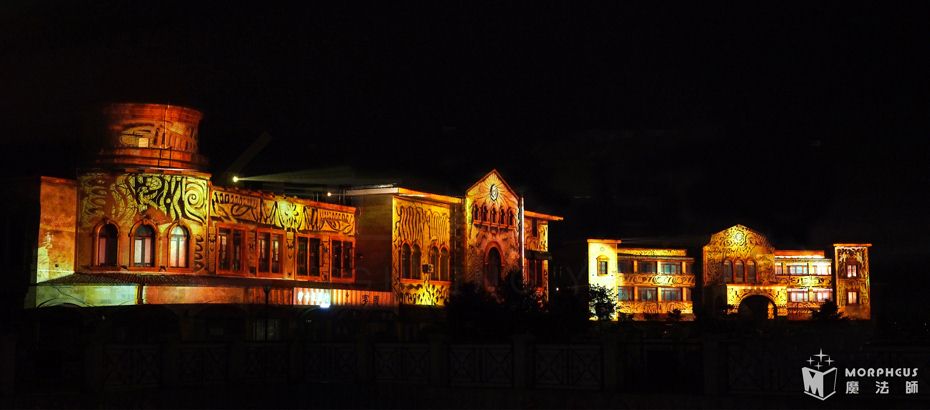 唐岛湾的商业广场从1号数到8号楼,总面积高达8000平方米。我们采用24台25000流明激光投影机及视频数据实时采集技术,成功实现了8栋楼体动画同步联动的震撼效果。本次建筑投影秀共使用了24台2.5万流明度的投影机,涉及8栋大楼总面积大约4000多平方米的3D Mapping建筑投影秀。