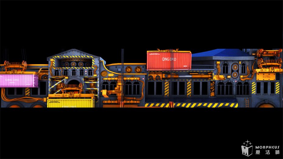 除此之外,我们还通过汲取城市的发展历史及文化元素,结合裸眼3d动画设计效果,共设计了两套内容主题,向来宾娓娓道来这座海滨城市的过去与未来。波澜壮阔的文化史诗通过强光源的投影机投影到大楼上,从青岛的啤酒工艺再到新时代的航海工业文明,尘封已久的历史卷轴就这样五光十色的铺陈在世界的眼前。