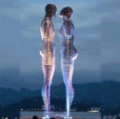 Ali and Nino是格魯吉亞雕塑家塔瑪拉的標誌性作品,根據愛情悲劇小說《Ali and Nino》設計。兩座高約8米的鏤空雕塑每天在固定的時間穿過對方的身體,向人們講述小說中男女主人公從相愛到被迫分離的淒美愛情故事。