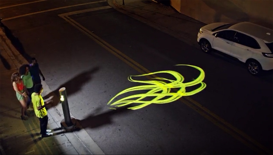 這臺在邁阿密街頭安裝的互動投影裝置,能够識別行人身上衣服的顏色,然後這顏色便從路人的衣服上飛躍而出,最後像潑灑顏料一樣,投射到馬路對面的汽車上。每一個人不同的衣服色彩與樣式,被選取而出,在夜色的襯托下,與現代的鋼鐵機器相得益彰,完美打造了一場風格濃郁的個人汽車展覽秀。